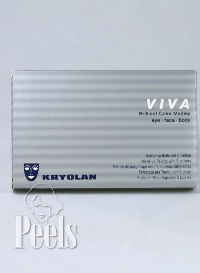 Viva Brilliant Color in een elegante cassette met 8 kleuren. Viva is een nieuw make-up concept voor ogen, gezicht en lichaam. Viva Brilliant Color is een geperste poeder met intensieve, glanzende kleuren. Ze kunnen droog en vochtig aangebracht worden met een kwastje of sponsje. Wanneer de kleuren vochtig opgebracht worden, zullen de kleuren nog beter blijven zitten en sprankelender zijn. Glanst dankzij Mica pigmenten, die geen metalen bevatten.
