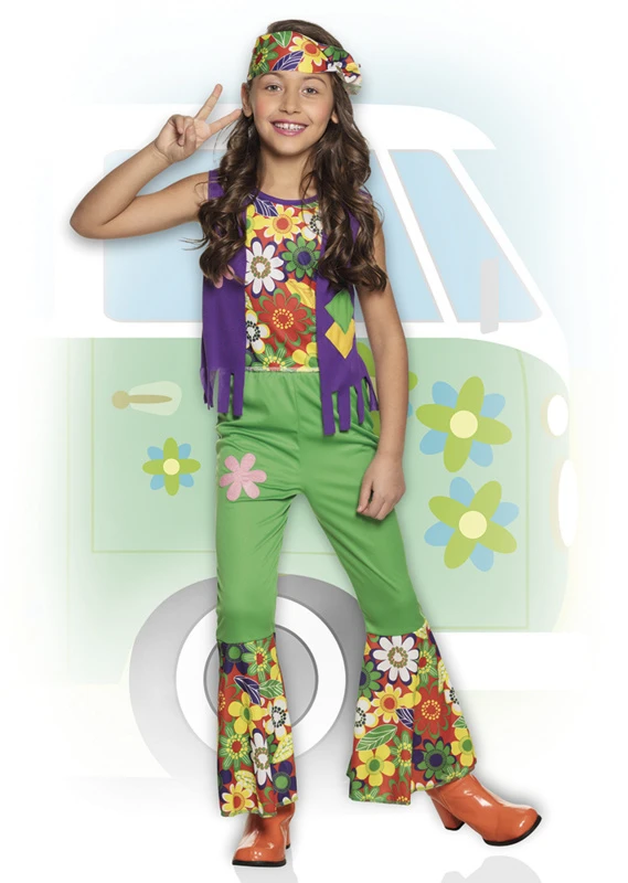 Thema: carnavalskleding, feest kleding, verkleedkledij, themafeest, goedkope, goedkoopste, feestkleding, hippie, hippies, woodstock, meisje